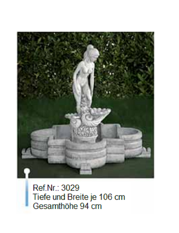 Ein wunderschöner Brunnen mit einer erotischen Frauenfigur als Wasserauslauf und einen unteren Wasserbecken, bestehend aus witterungs- und frostbeständigem Weißstein. Die antike Form wird in aufwendiger Handarbeit im wunderschönen Andalusien hergestellt und kann auch Ihren Garten einen mediterranen Touch verleihen. Mit einer Pumpe, die das Wasser in einen geschlossenen Kreislauf immer wieder von unten zum oberen Auslauf pumpt und bei uns auch erhältlich ist, hat man eine wunderschöne Wasserfontäne. Der Aufbau ist relativ leicht zu handhaben, denn der Brunnen besteht aus mehrere Teile die zusammengesetzt werden. Beim Kauf des Brunnen erhalten Sie per Mail vorab die Aufbauanleitung.