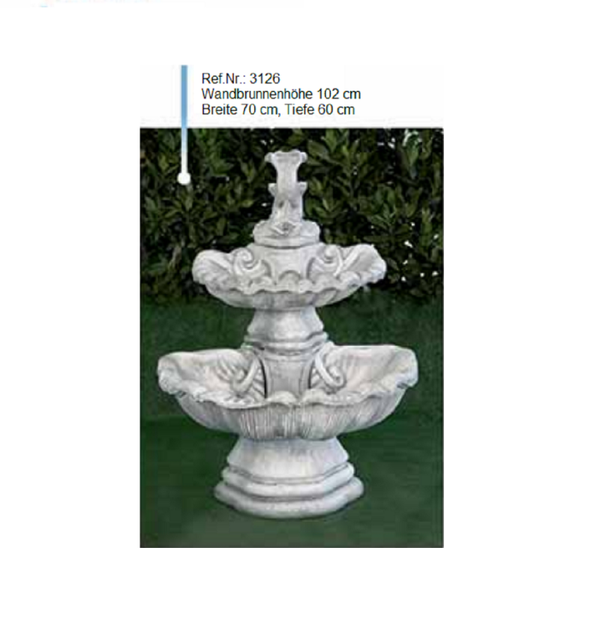 Brunnen aus Weißstein mit 2 Schalen und ein Fisch als Wasserauslauf ( Ref.Nr. 3126 )