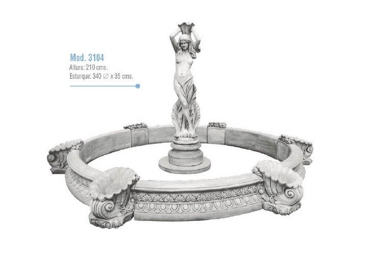 Brunnen aus Weißstein mit einer Schale und einer Frauenfigur ( Ref.Nr. 3104 )