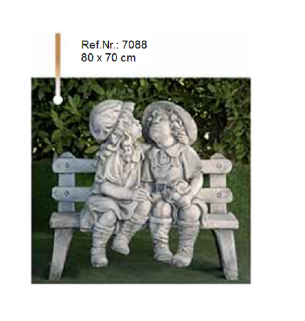 Mädchen & Junge auf der Bank aus Weißstein - Ref.Nr. 7088