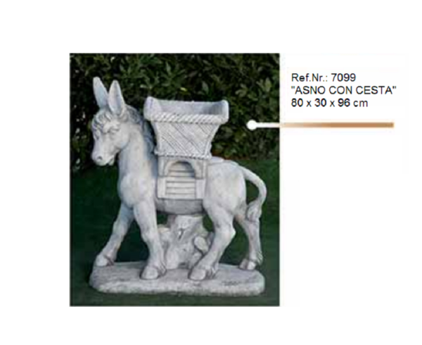 Der Esel mit den Namen „ ASNO CON CESTA “ hat einen Pflanzkübel auf den Rücken. Das ist ein antiker Guss aus Witterung - und frostbeständigem Weißstein und in den Farben Grau, Braun oder Ocker erhältlich. Diese Skulptur wird in aufwendiger Handarbeit in Andalusien hergestellt und verleiht jedes Anwesen oder Terrasse einen mediterranen Touch.