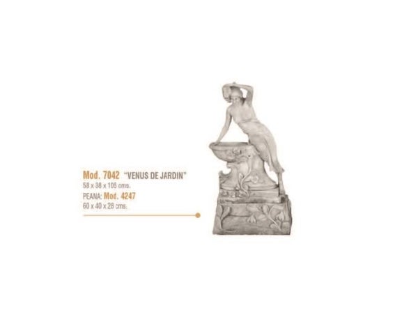 Die weibliche Skulptur „ VENUS DE JARDIN “ und die männliche Skulptur „ BACODE DE JARDIN “ sind auf einen kleinen Brunnen angelehnt, die man auch für Wasserspiele nutzen kann. Die Figuren stehen auf einen Sockel, der nicht im Preis der jeweiligen Figur enthalten ist, aber auf Wunsch mit geliefert werden kann.