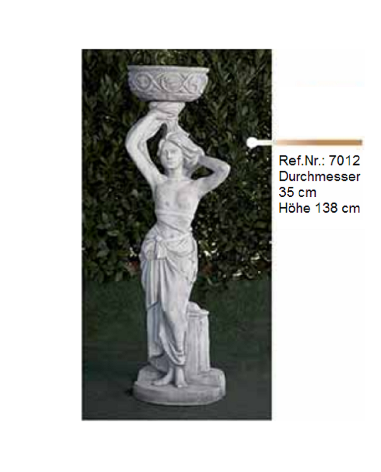 Diese weibliche Skulptur mit einer Schale auf den Kopf, die man als Pflanzschale oder vieles anderes nutzen kann, ist ein antiker Guss aus Witterung - und frostbeständigem Weißstein und in den Farben Grau, Braun oder Ocker erhältlich. Die Skulptur wird in aufwendiger Handarbeit in Andalusien hergestellt und verleiht jedes Anwesen oder Terrasse einen mediterranen Touch.