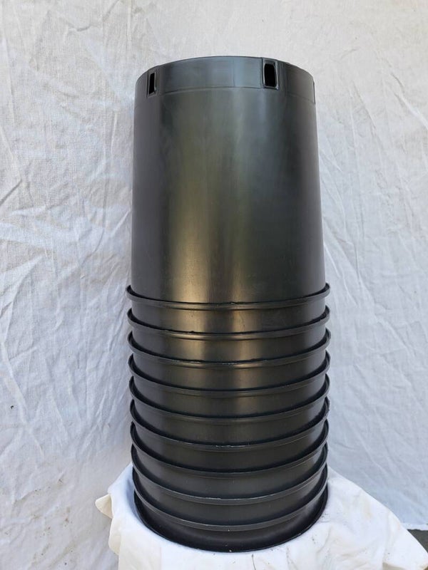 Sie erhalten hier 5 Pflanztöpe aus Plastik in schwarzer Farbe.